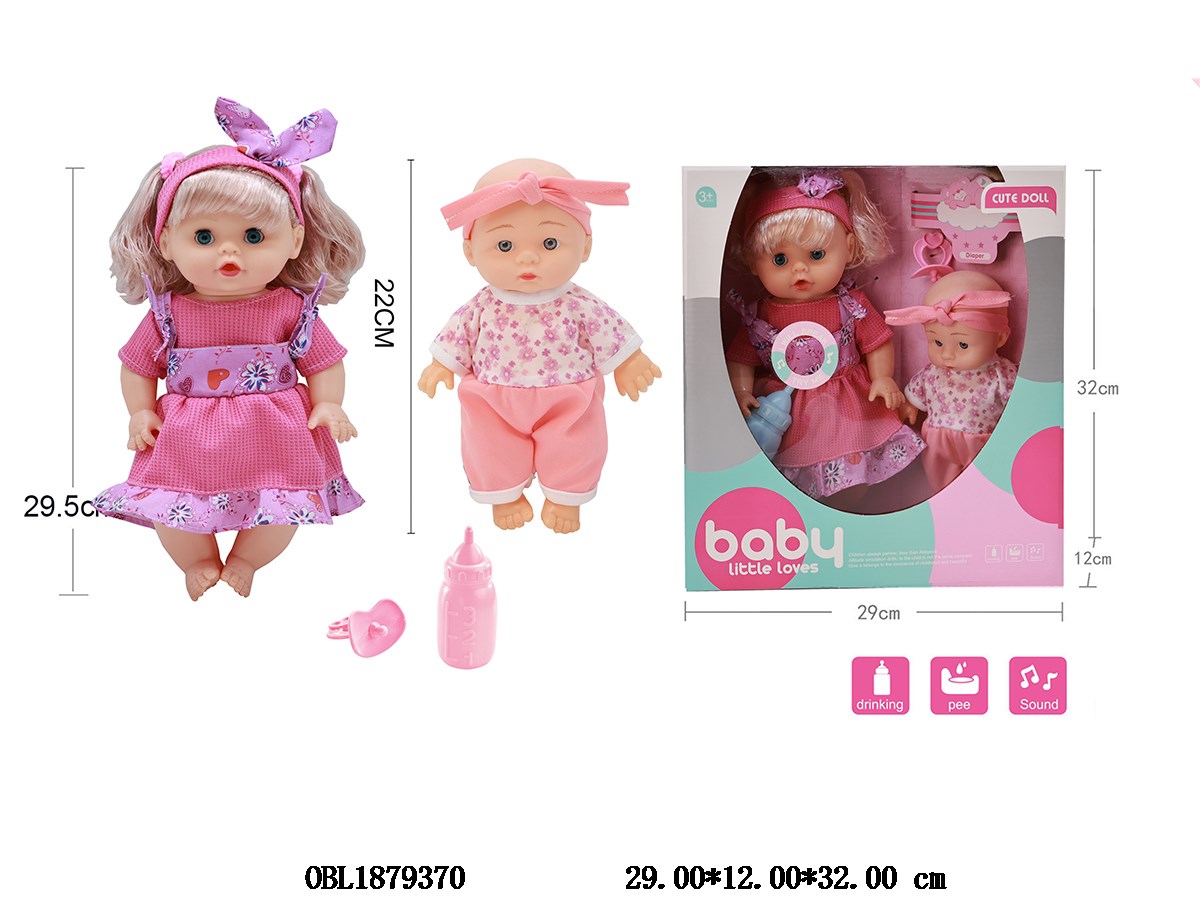 Home > Function Dolls > 12 inch empty body water, urine, live eye doll set with 9-inch empty body Barbie with four tone IC 3 * AG13 electric bag clothes, one style and one color