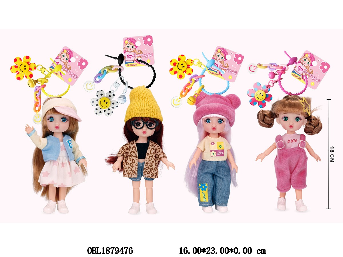 6-inch solid body active joint Barbie with keychain main body clothing, 1 style, 1 color, 4 mixed styles