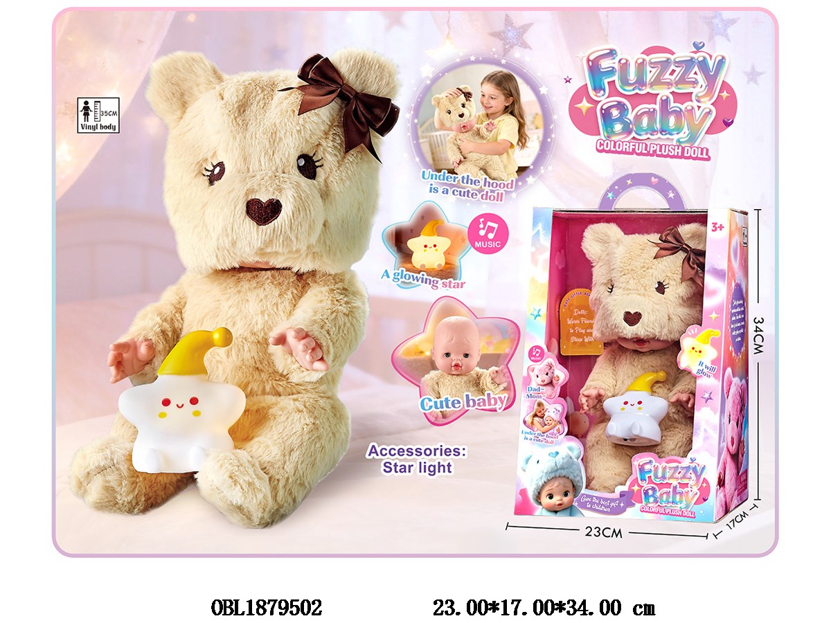 14 inch pullover plush doll with music IC night light 3 * AG13 electric package main body clothes 1 style 1 color