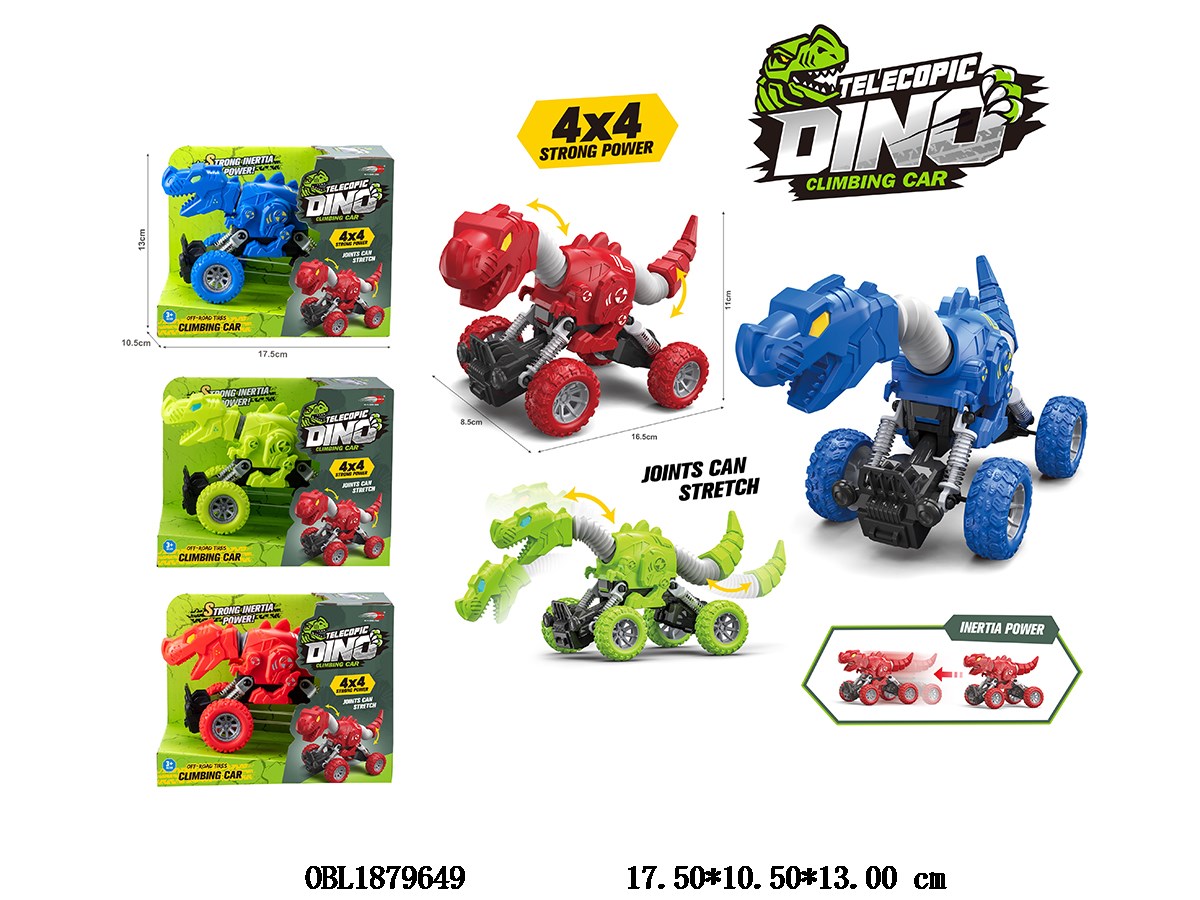 Home > P/B Car > Dual force retractable dinosaur car with 3-color mixed design