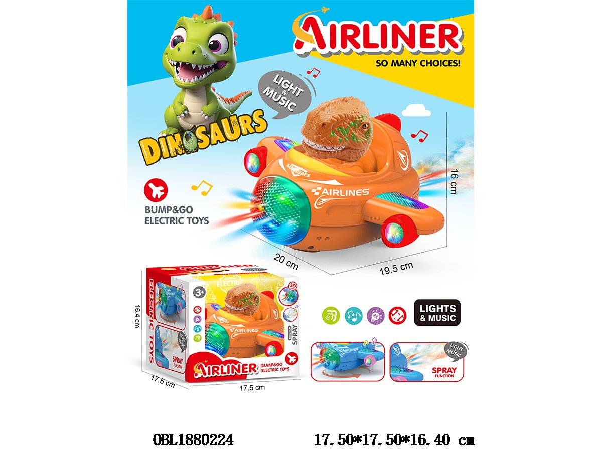 Home > B/O Plane > Dinosaur electric universal plane with light, music, spray 3 * AA, no electricity included