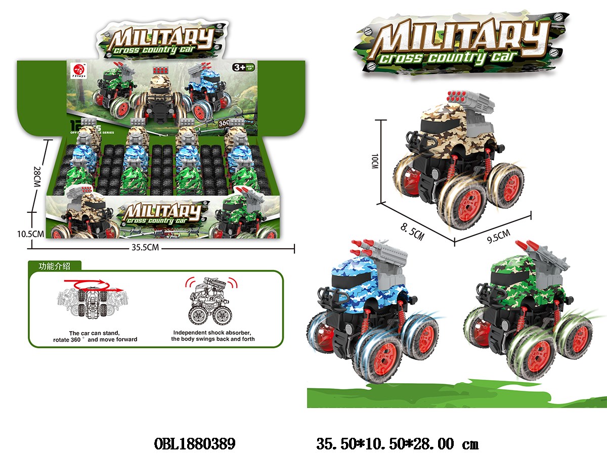 Inertial military stunt vehicle, 3 mixed models, 12 pieces per display box
