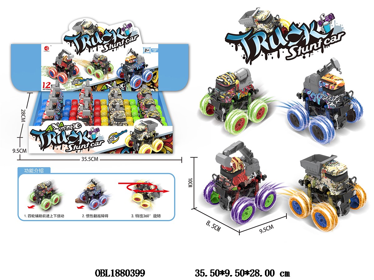 Inertial engineering stunt vehicles, 4 models, 4 colors mixed, 12 pieces per display box