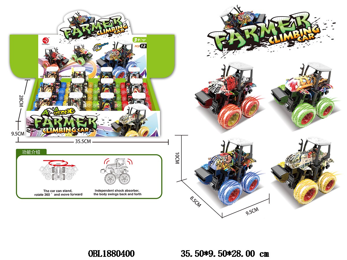 Inertia Farmer Stunt Vehicle 4-Color Mixed Pack, 12 pieces per display box