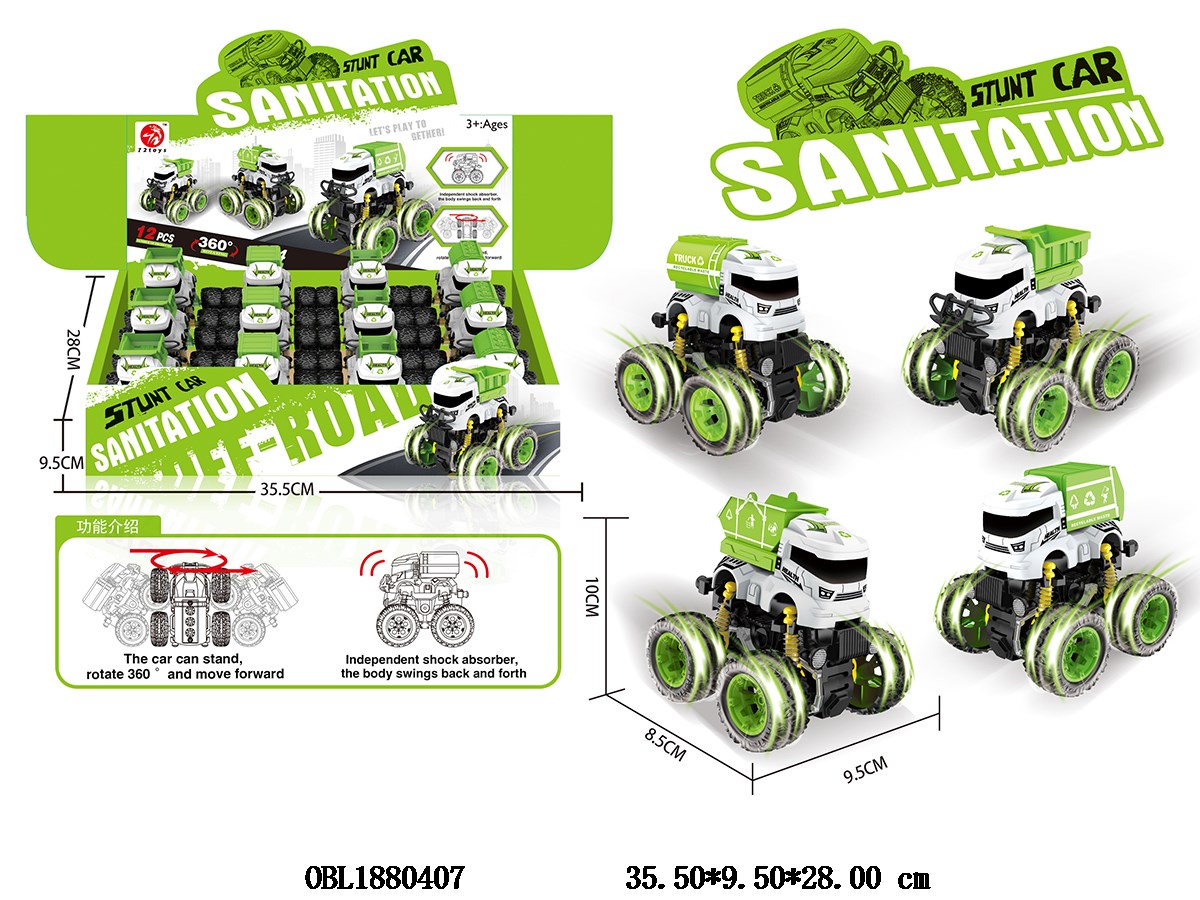 Inertial sanitation stunt vehicle 4 mixed models, 12 pieces per display box