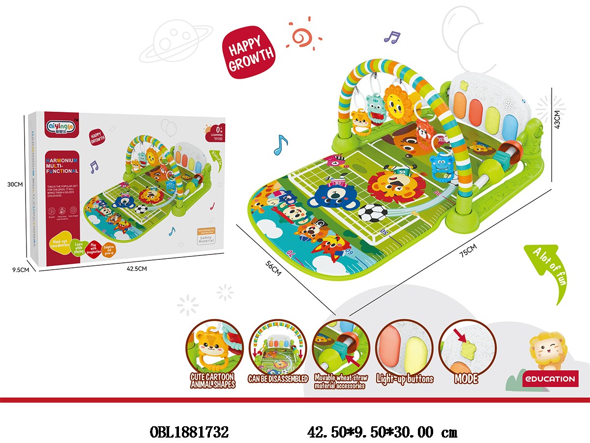 Wheat straw material baby pedal piano with guardrail music 3 * AA, no electricity included