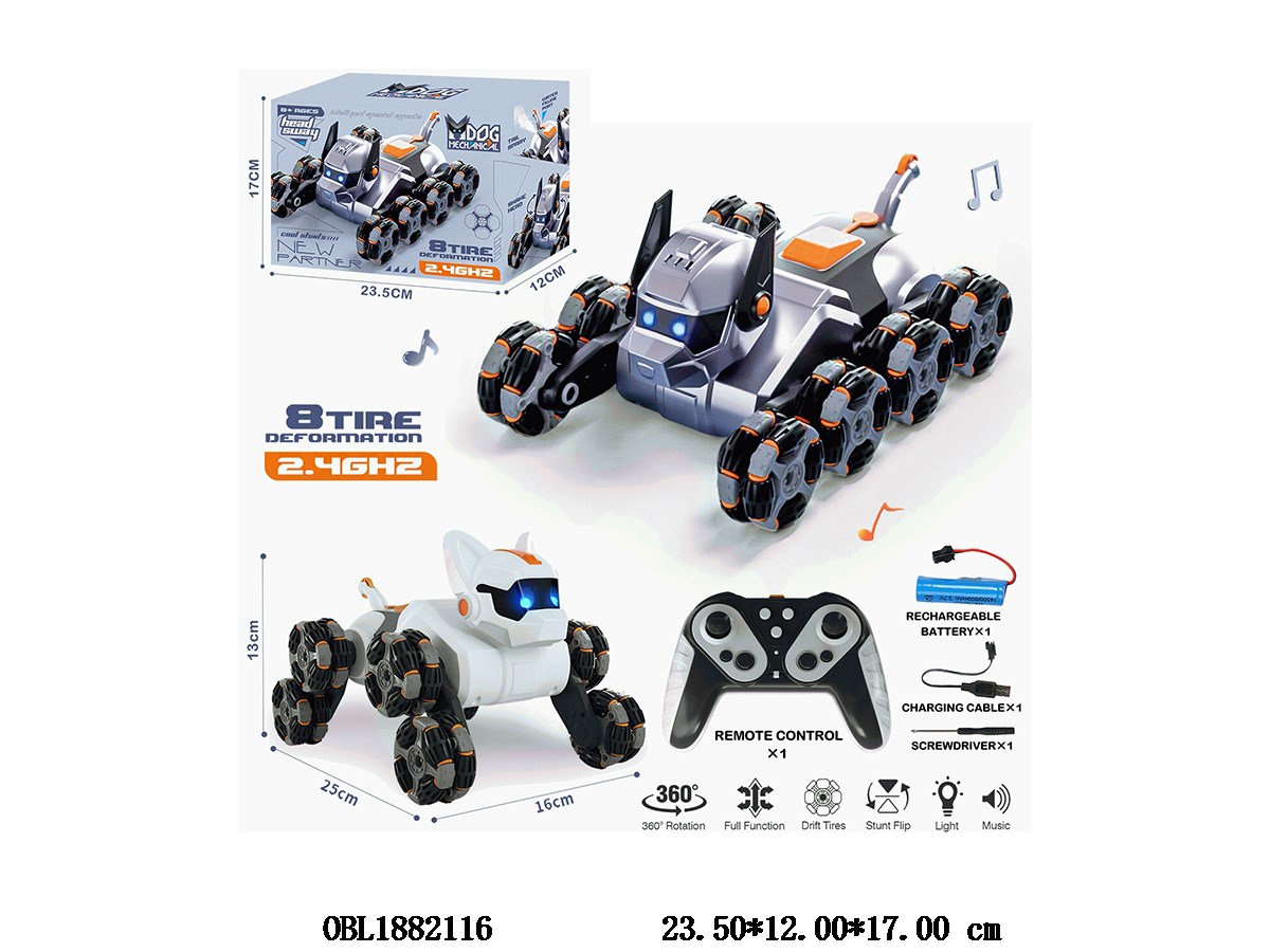 Intelligent remote control electric dog with music and USB cable, 3.7V lithium battery with power included remote control, 2 * AAA without power included, 2.4G frequency, 2 colors mixed