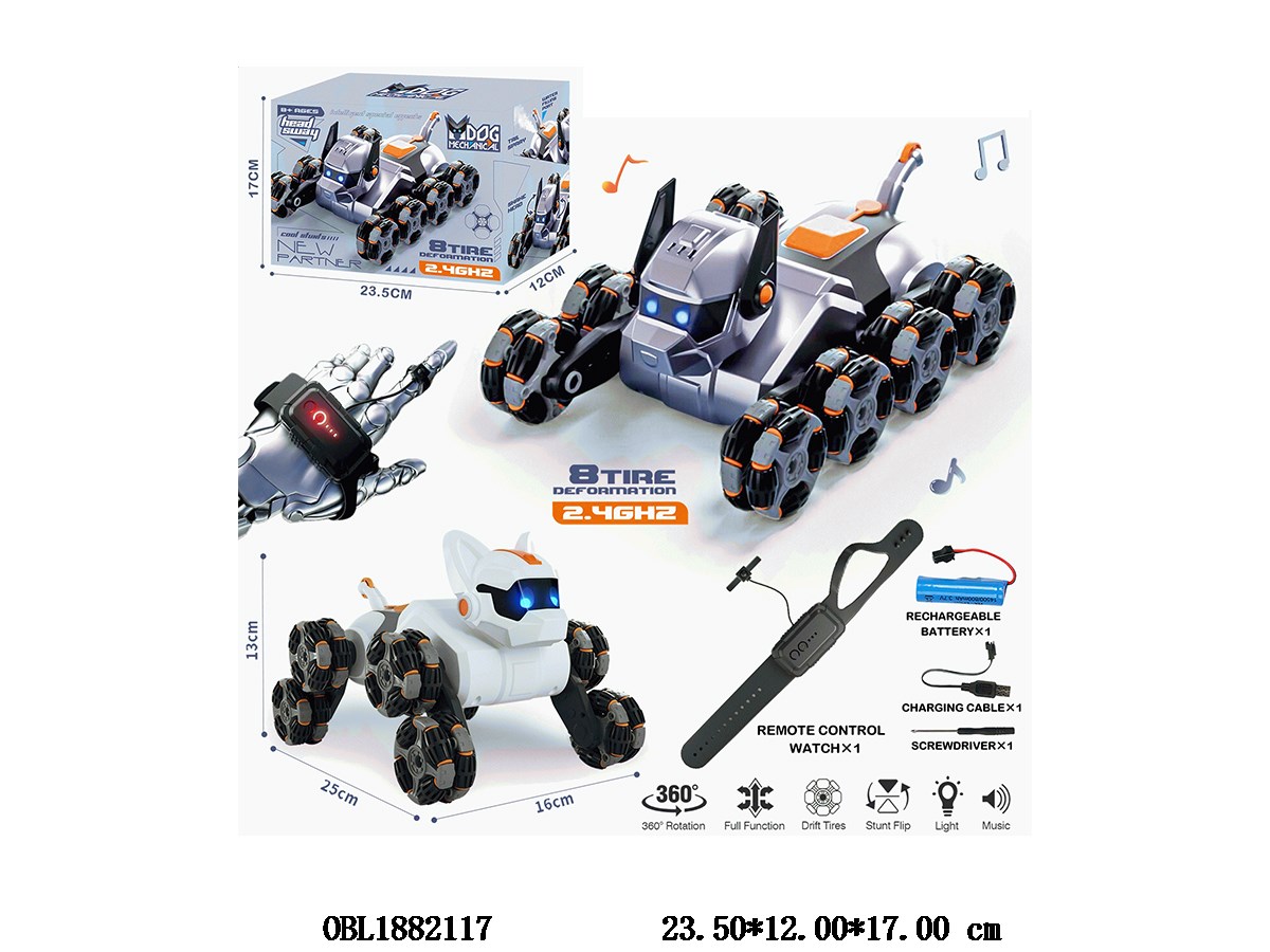 Intelligent remote control electric dog with music and USB cable, 3.7V lithium battery pack, watch remote control, 1 * AG13 pack, 2.4G frequency, 2 colors mixed