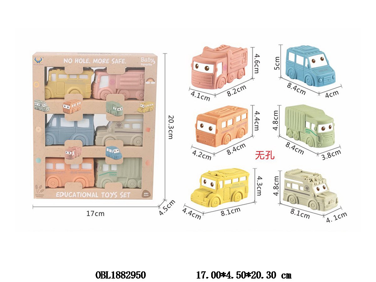 6-pack wheat straw material non porous soft rubber cartoon car set