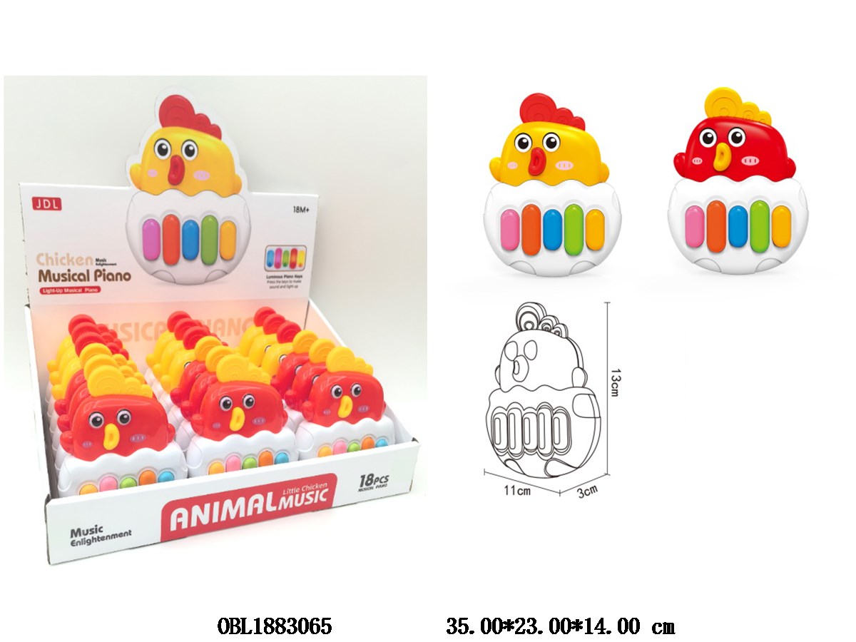 Multi functional cute chicken electronic keyboard with lighting, music, 3 colors mixed, 2 * AA, no electricity included, 18 pieces per display box