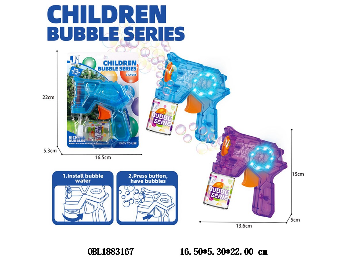 Inertial Space Bubble Gun with Light and 70ML Bubble Water 2 * AG3 Package Electric 2 Color Mixed