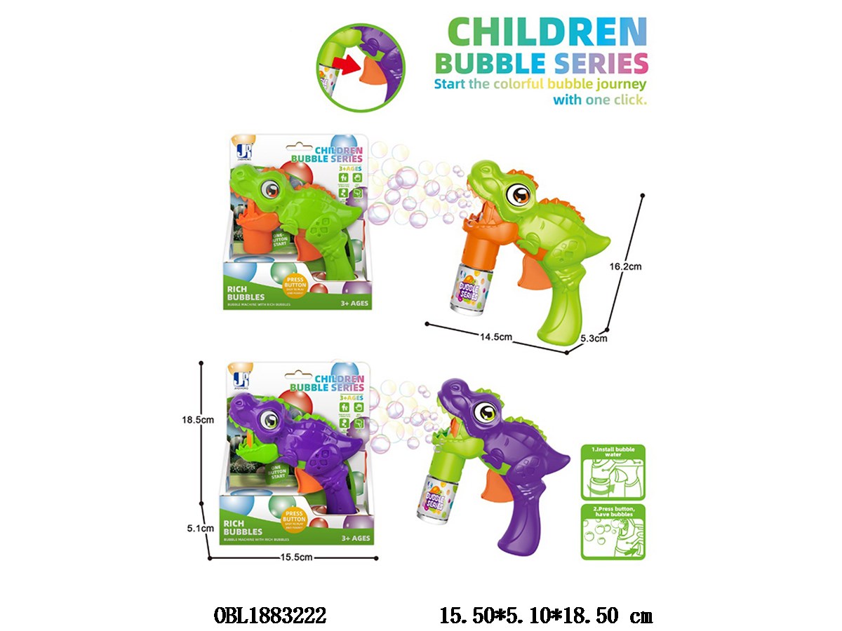 Home > B/O Bubbles Gun > Inertial dinosaur bubble gun with 70ML bubble water 2-color mixed