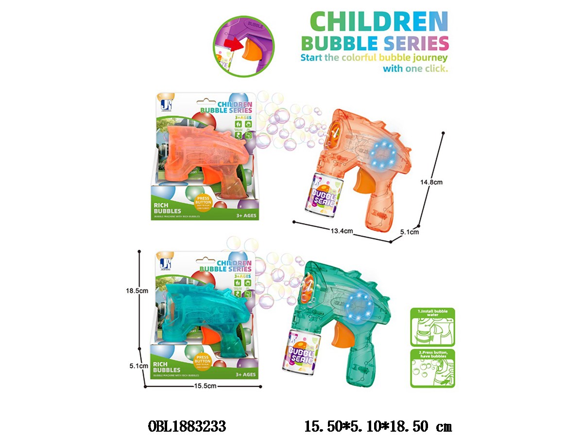 Inertial Space Bubble Gun with Light and 70ML Bubble Water 2 * AG3 Package Electric 2 Color Mixed