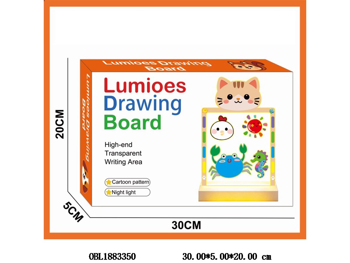 Large cartoon illuminated drawing board with small night light and USB cable