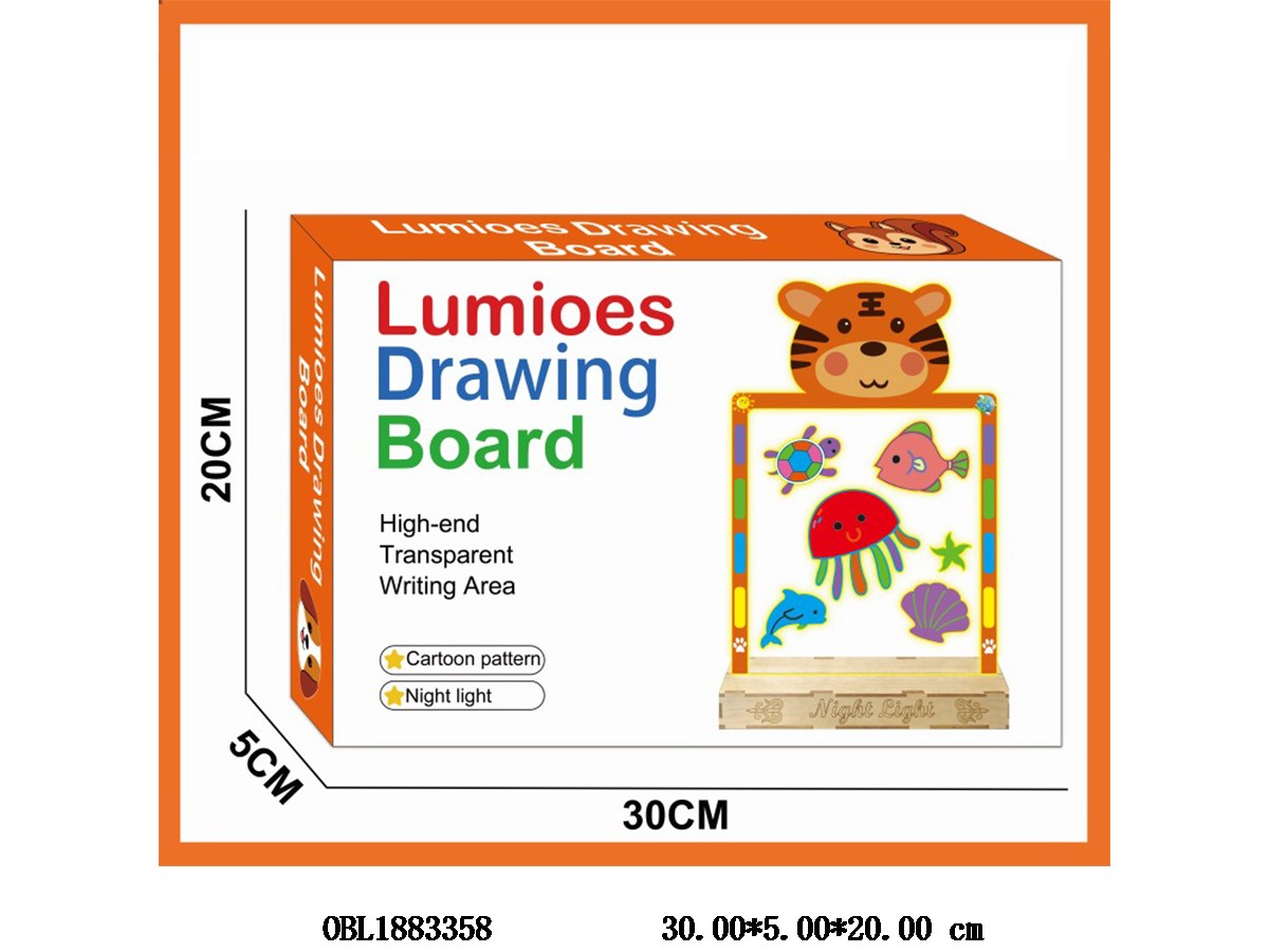 Large cartoon illuminated drawing board with small night light and USB cable