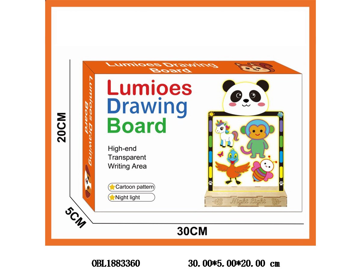 Large cartoon illuminated drawing board with small night light and USB cable