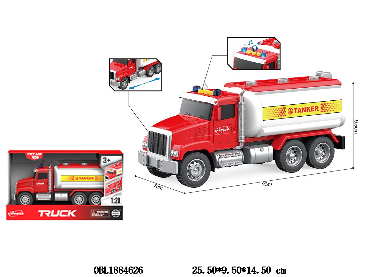 1: 20 inertia oil tank truck with lighting and sound 3 * LR44 package electricity