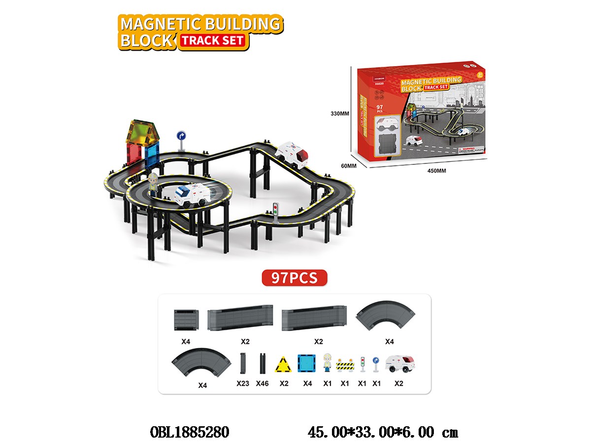 Home > Magnetic Blocks > Puzzle Magnetic Plate Rail Electric Car Set 97PCS Car 1 * AA, Excluding Electricity