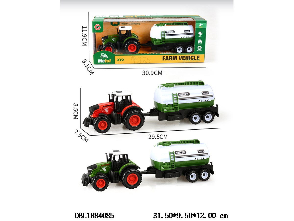 Home > Die-Cast Car > Alloy powered farmer s cart towing water tank mixed with 2 colors