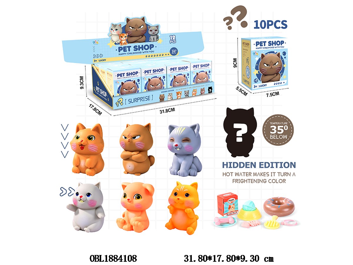 Vinyl cat blind box set with 6 mixed designs, 12 small boxes in one display box