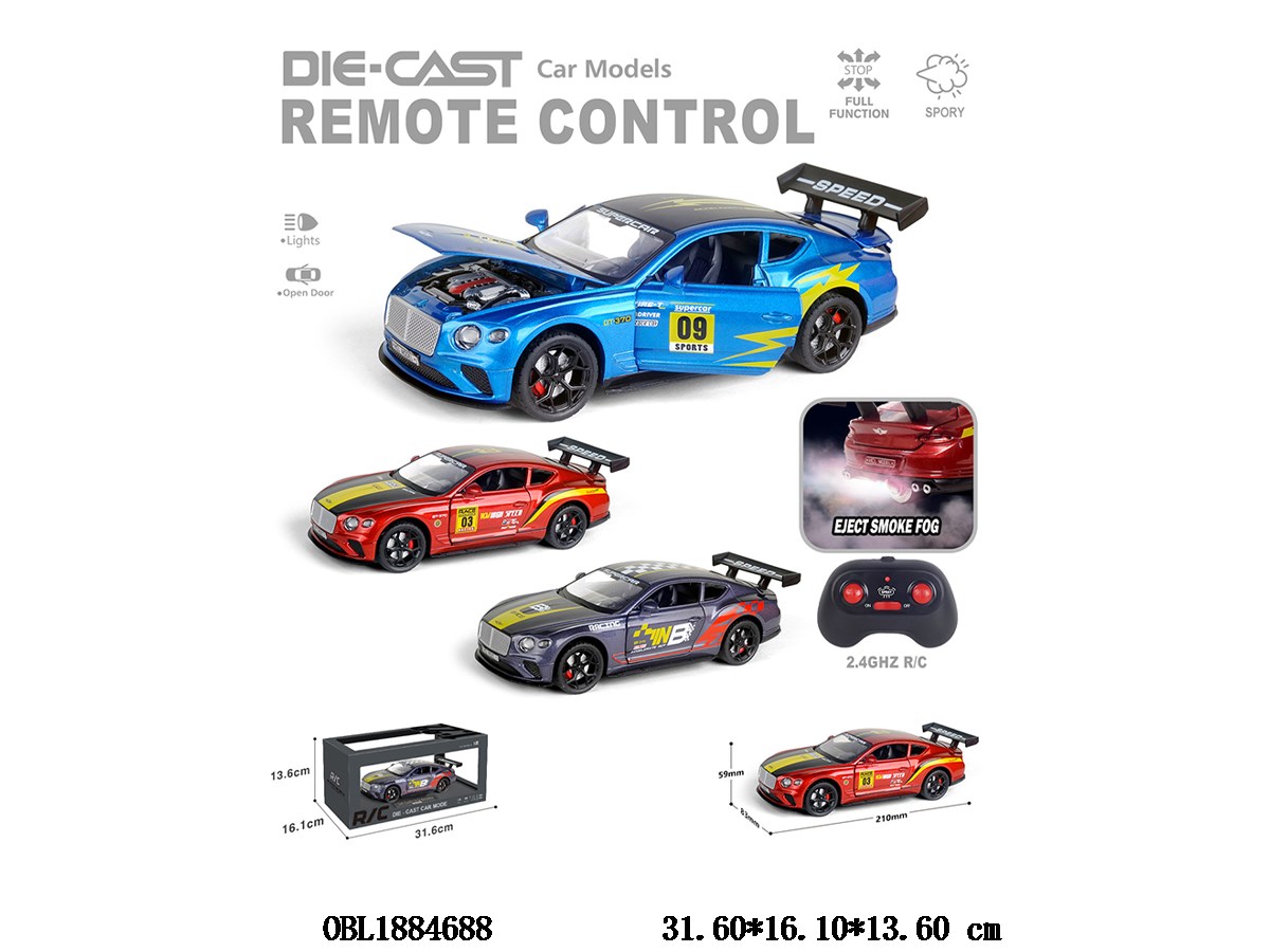 Home > R/C Car > 1: 22 remote control alloy car with light spray can open the door with USB cable body 3.7V electric remote control 2 * AA non electric 2.4G three color mixed