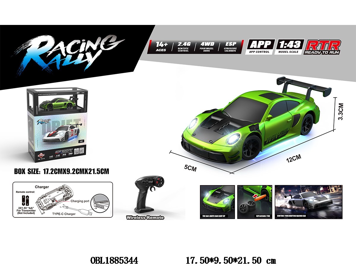 1: 43 Full Scale Remote Control Car with Light Drift and USB Cable Body 3.7V Soft Pack Battery Pack Remote Control 2 * AA No Pack 2.4G Frequency