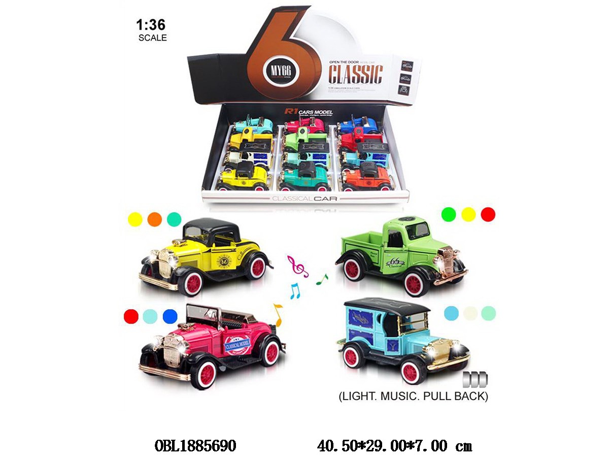 1: 36 alloy regenerative car with light and sound, capable of opening doors, 3 * AG3, including electricity, 4 models, 3 colors each, mixed with 12 pieces, packaged in a display box