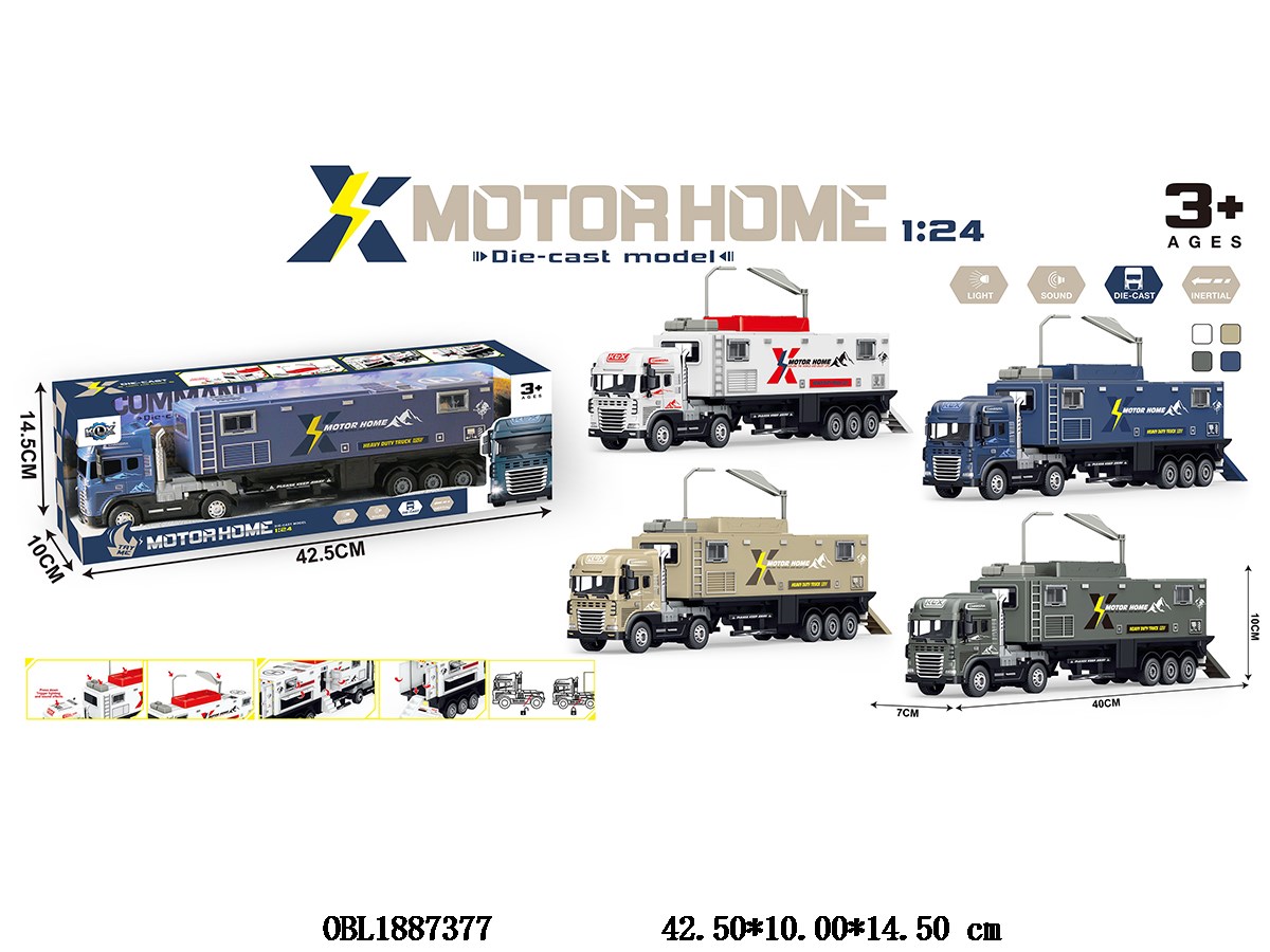 Home > Die-Cast Car > Alloy inertia camping RV with lighting and sound 3 * AG13, including electricity and 4 colors mixed