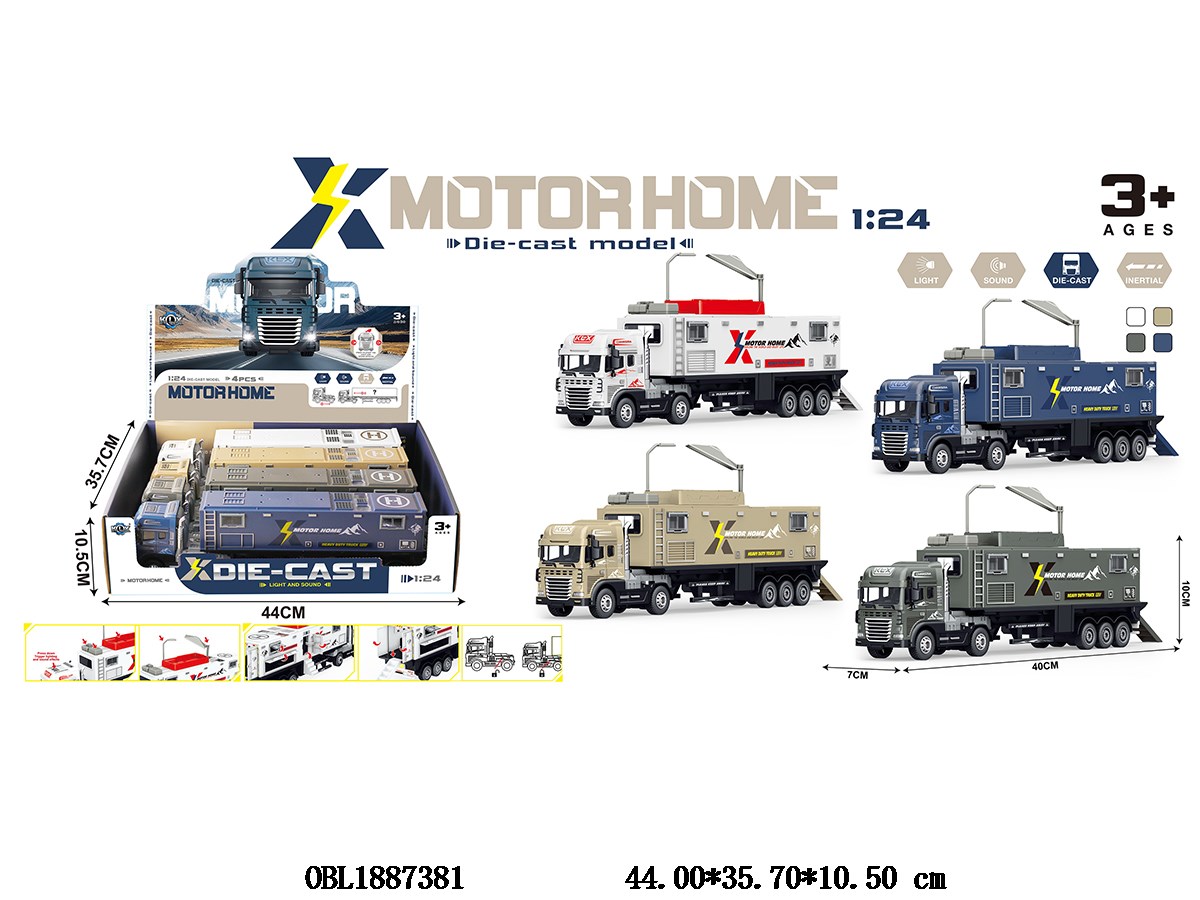 Home > Die-Cast Car > Alloy inertia camping RV with lighting and sound, 3 * AG13, including electricity, 4 colors mixed, 4 pieces per display box