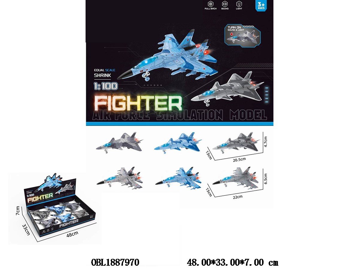 Home > Die-Cast Plane > Alloy powered fighter with sound and light 3 * button battery pack, 2 options, 3 colors mixed, 6 pieces, 1 display box