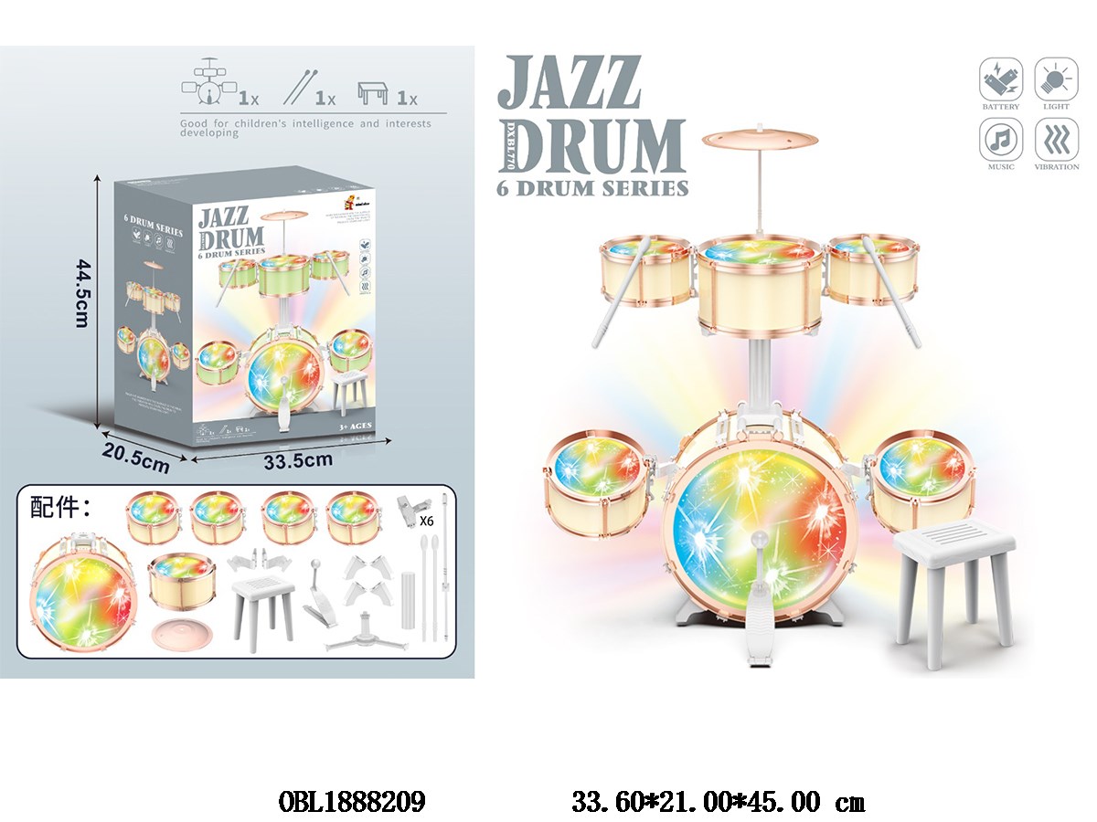 Home > Jazz Drum > Jazz drum set with chair, lighting, music, 6 * AA, no electricity included