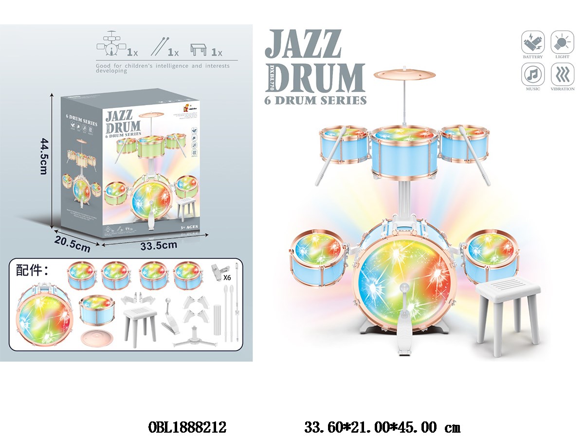 Home > Jazz Drum > Jazz drum set with chair, lighting, music, 6 * AA, no electricity included