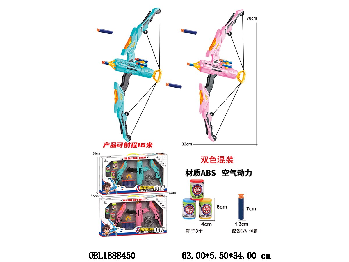 Aerodynamic EVA soft elastic bow and arrow set with 2 colors mixed