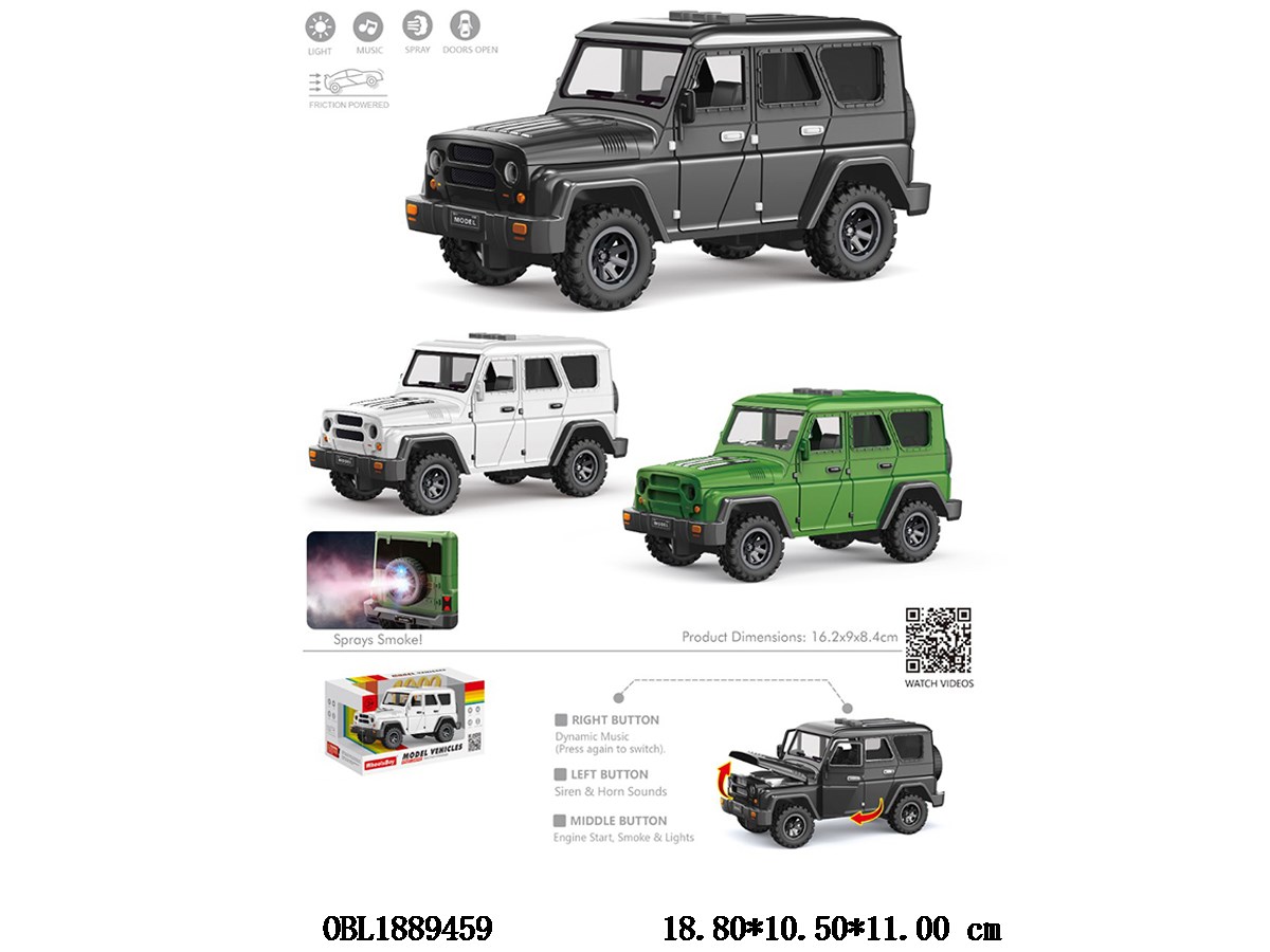 Inertia simulation vehicle with light, music and spray can open the door 2 * AAA, non electric, mixed with three colors