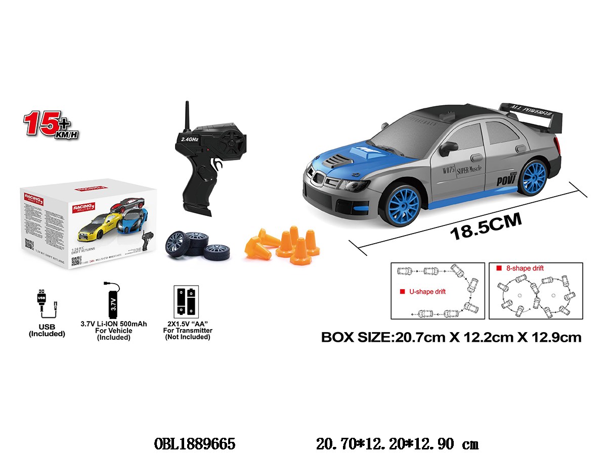 1: 24 remote control drift car with lights and USB cable. Body 3.7V lithium battery included remote control 2 * AA no power included 2.4G