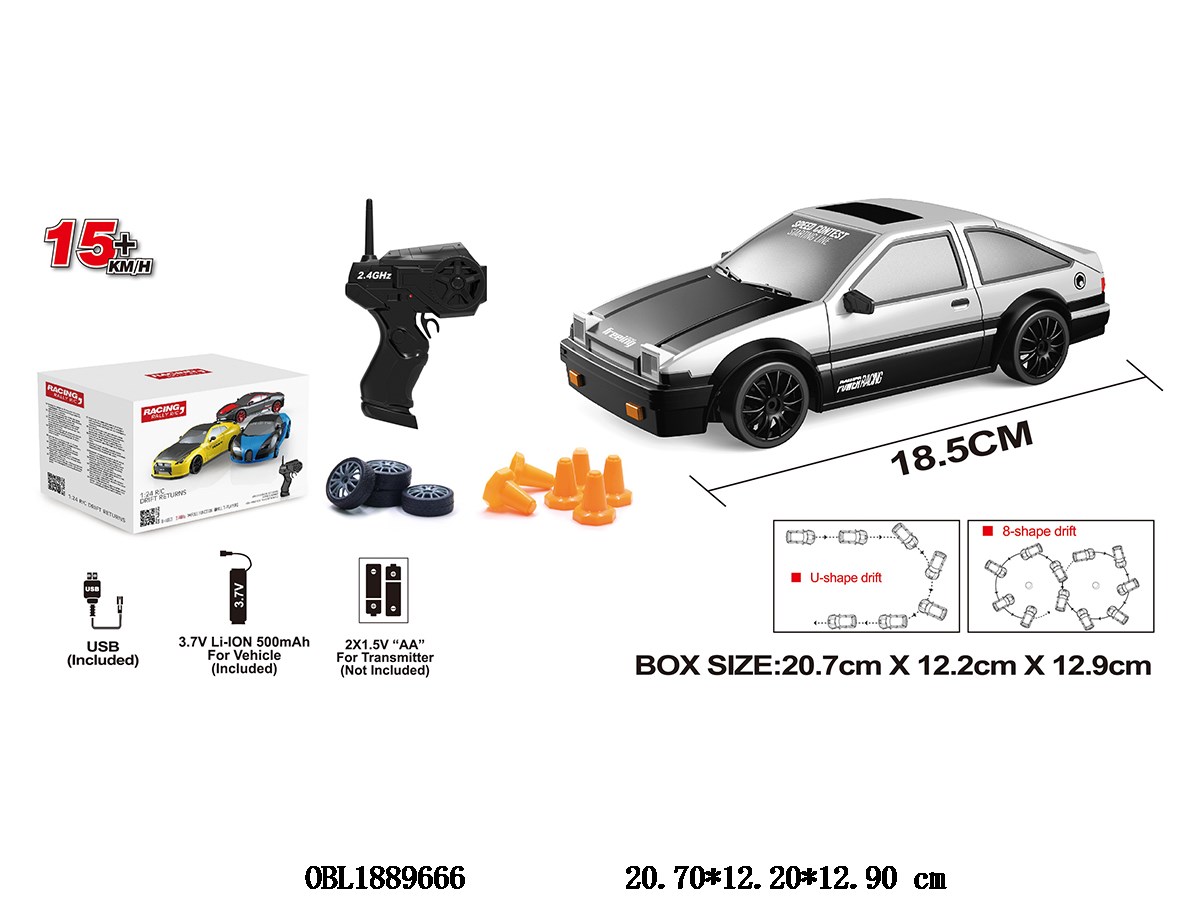 1: 24 remote control drift car with lights and USB cable. Body 3.7V lithium battery included remote control 2 * AA no power included 2.4G
