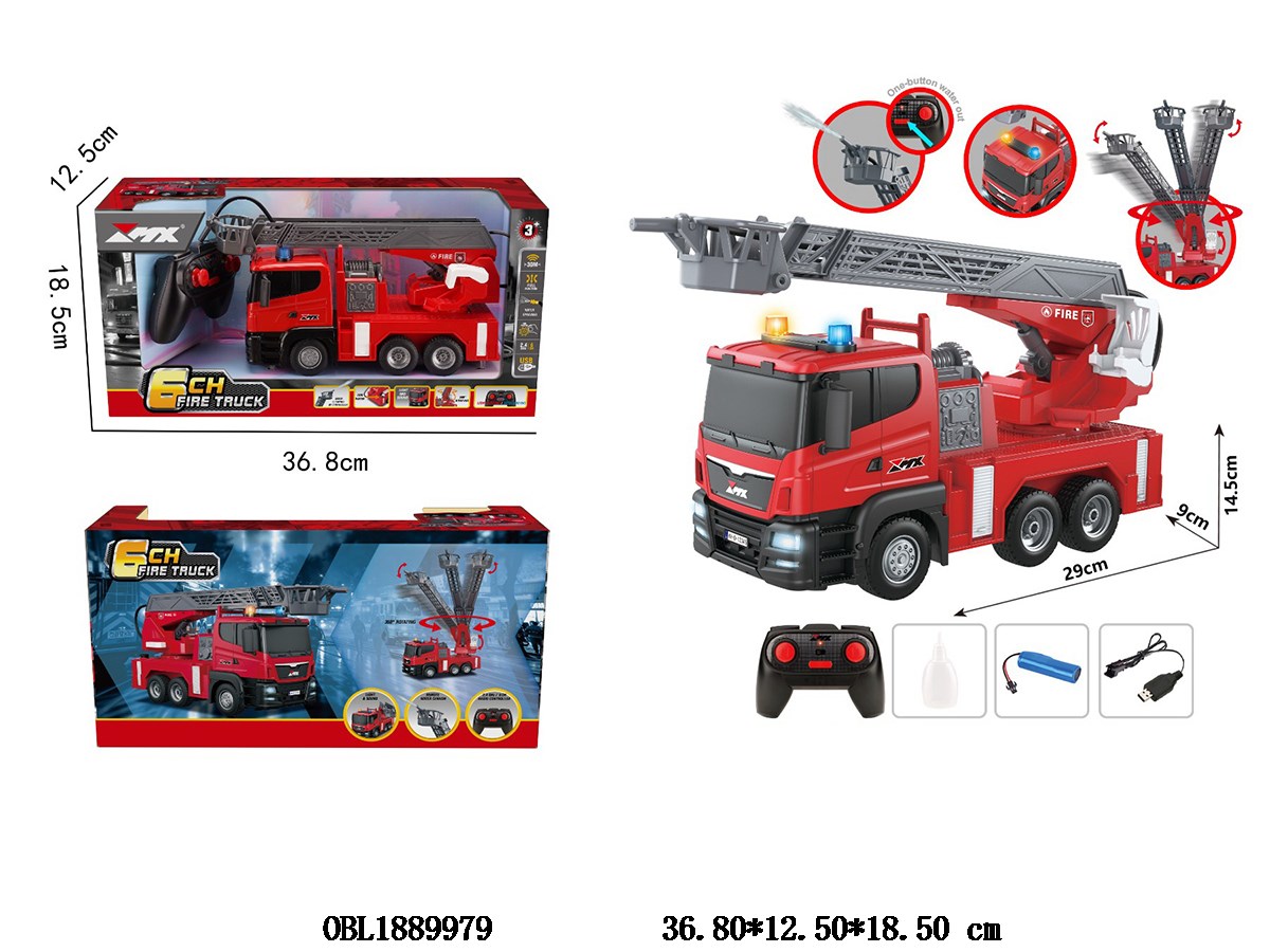 Remote control sprinkler fire ladder truck with USB cable body 3.7V lithium battery included remote control 2 * AA without power 2.4G frequency
