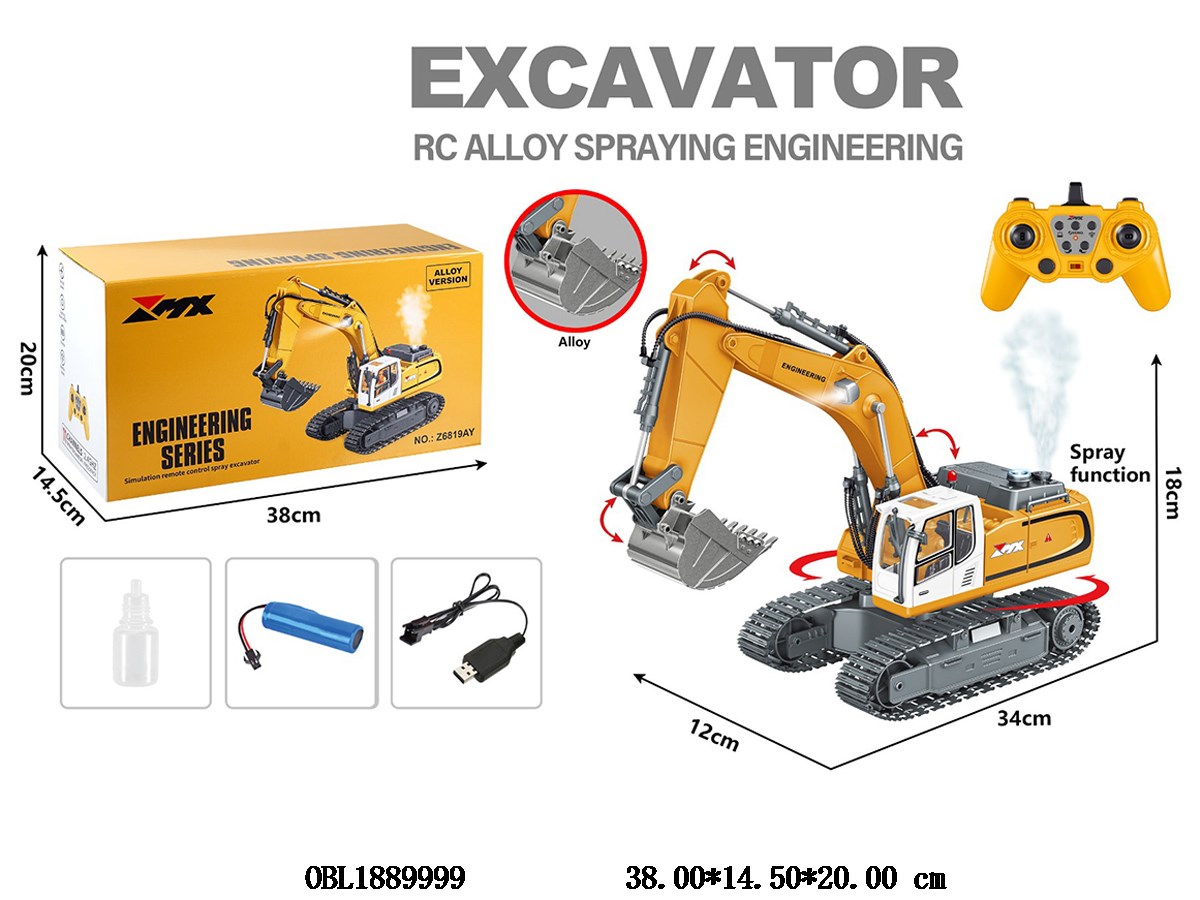 Home > R/C Car > 11 way remote control alloy crawler engineering excavator with acousto-optic spray, USB cable body, 3.7V lithium battery pack, electric remote control, 2 * AA, no power pack, 2.4G frequency