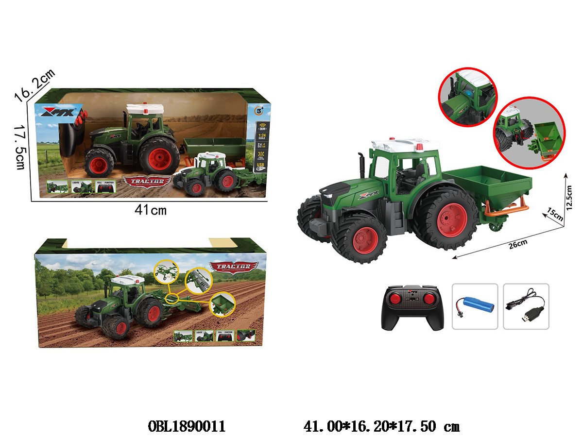 Four way remote control farmer s car with lights and USB cable. Body 3.7V lithium battery with power included remote control 2 * AA without power included 2.4G frequency