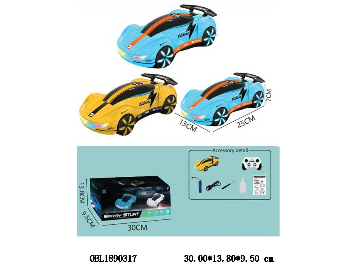 New energy remote control vehicle with light, spray, USB cable, body 3.7V lithium battery pack, electric remote control, 2 * AA, no power pack, 2-color mixed pack, 2.4G