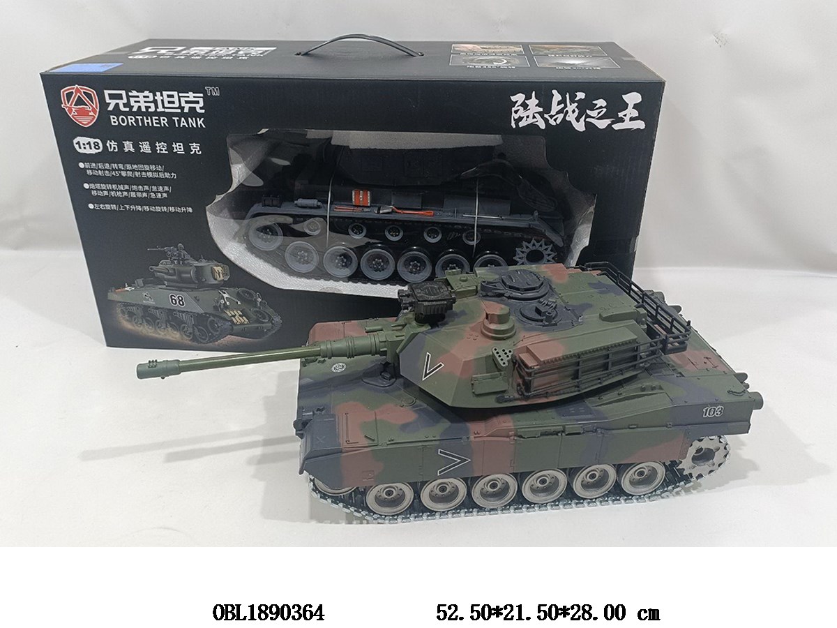 Home > R/C Tank > Chinese remote control tank with smoke and USB cable body 7.4V lithium battery included remote control 4 * AA without power 2.4G frequency military green