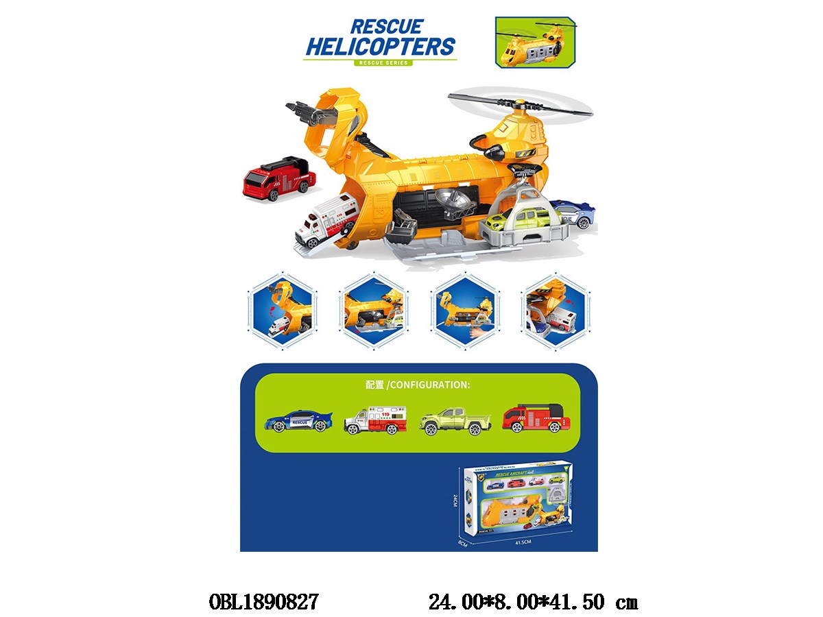 Home > Free Wheel Plane > Sliding rescue storage helicopter set with 4 sliding cars