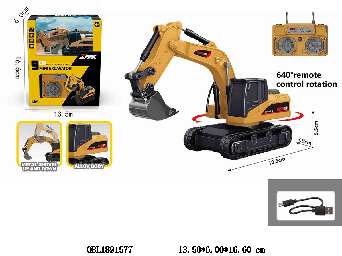 9-way fully proportional remote control alloy mini crawler excavator with USB cable body 3.7V power included remote control 2 * AAA power not included 2.4G