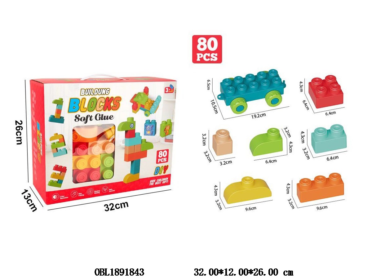 Puzzle Soft Rubber Versatile Shape Building Blocks 80PCS