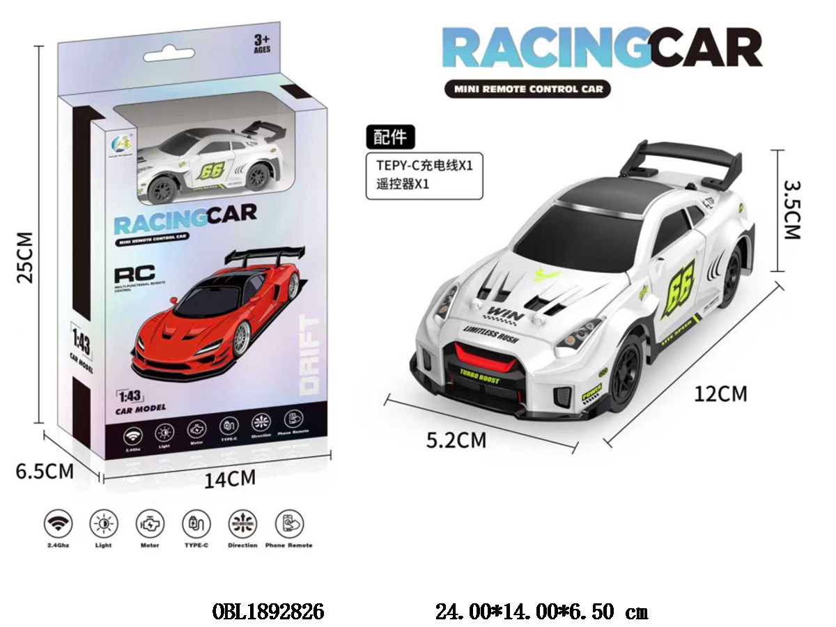 Home > R/C Car > 1: 43 Four way remote control car with lights and USB cable, body 3.7V lithium battery included remote control, 2 * AA non included 2.4G white