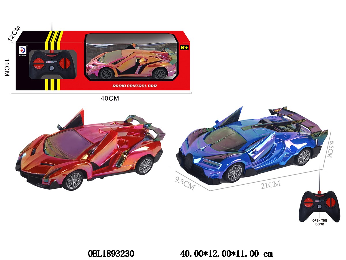 1: 24 simulation remote control sports car with lights, one click door opening, body 3 * AA without power, remote control 2 * AA without power, mixed color