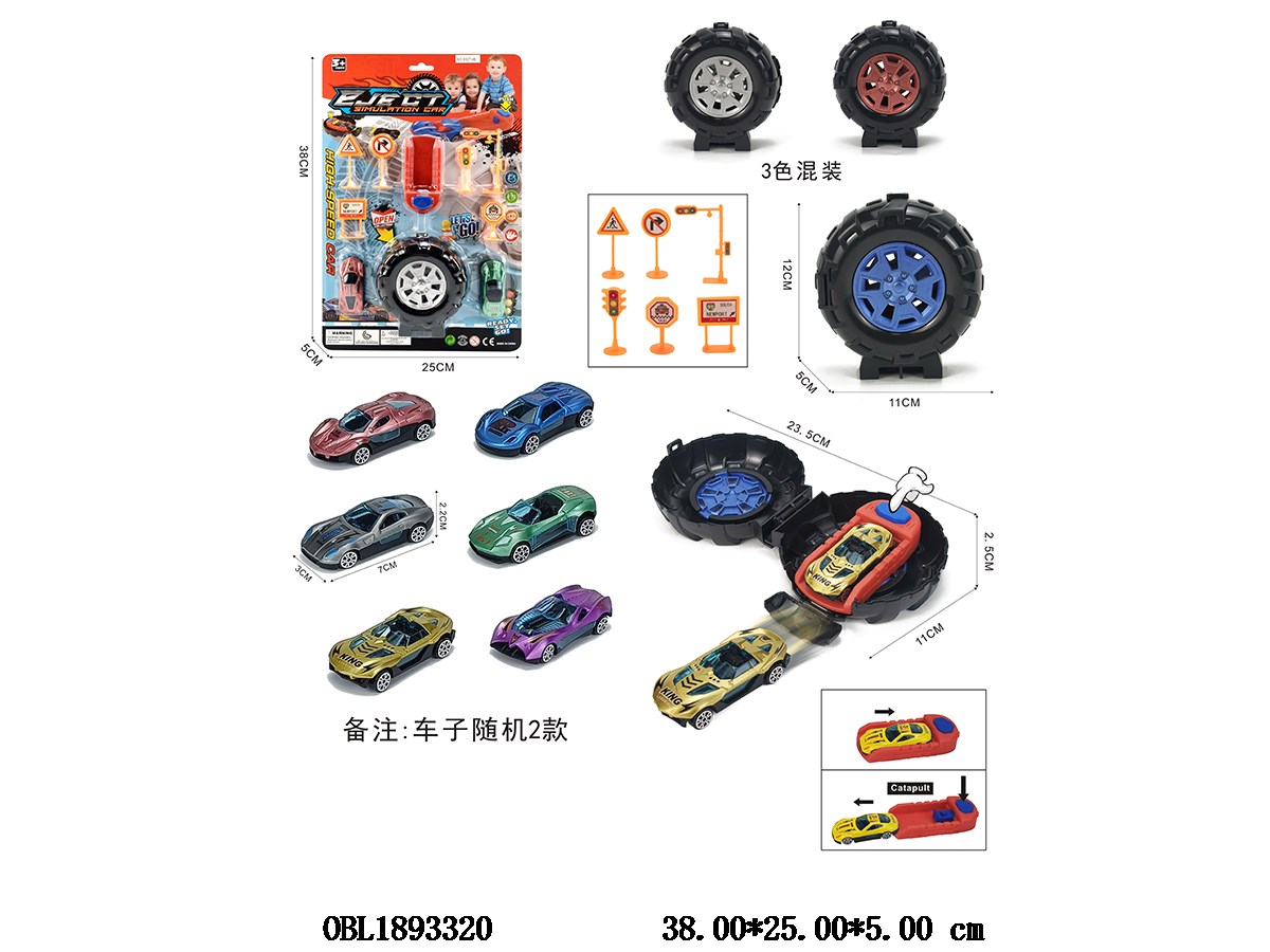 Wheel ejection toy set with 2 sliding car wheels, 3 color mixed car, 6 mixed cars
