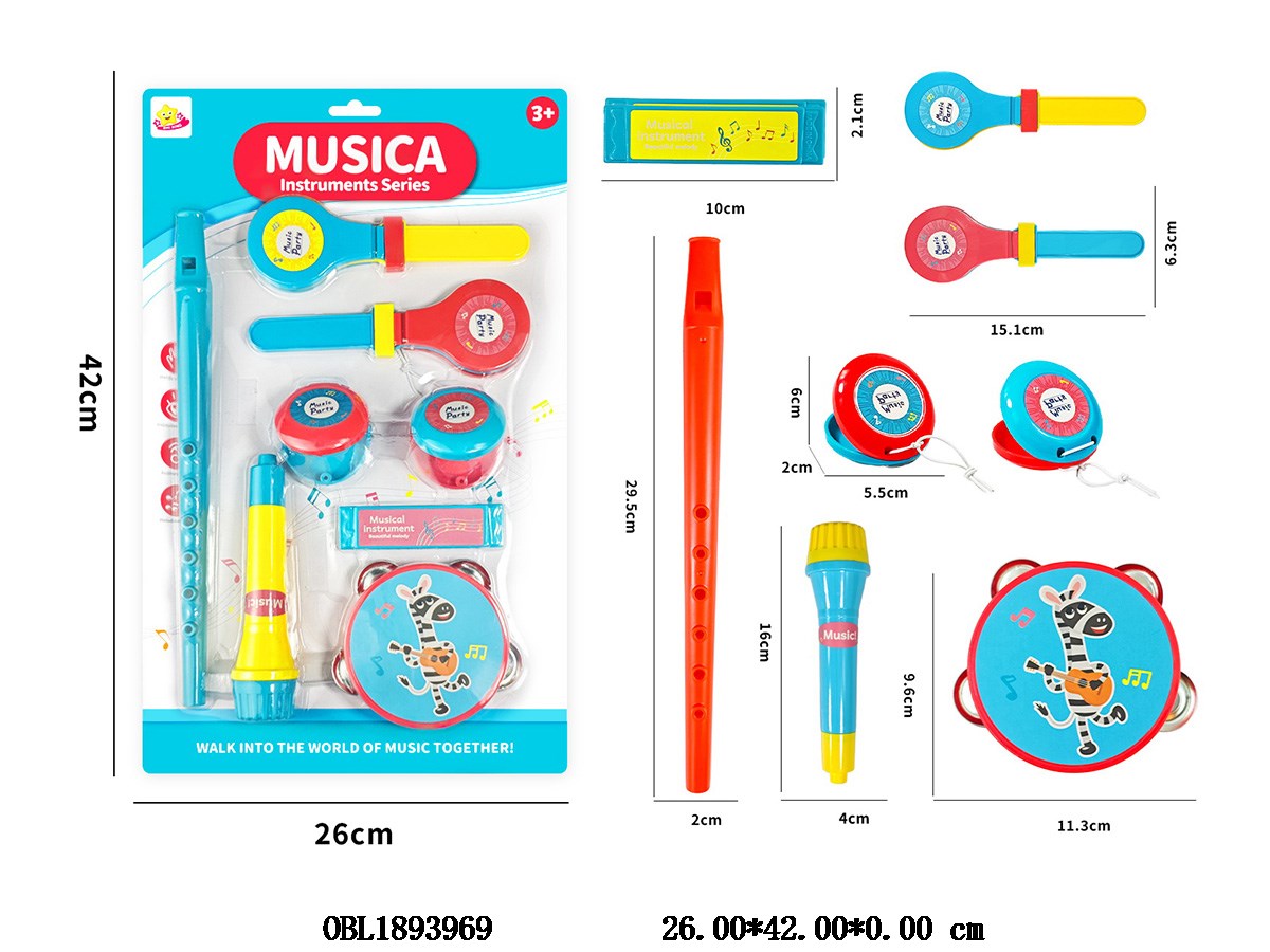 Home > Musical Instruments Suit > Instrument combination set, including drum, flute, harmonica, clapper, soundboard, microphone