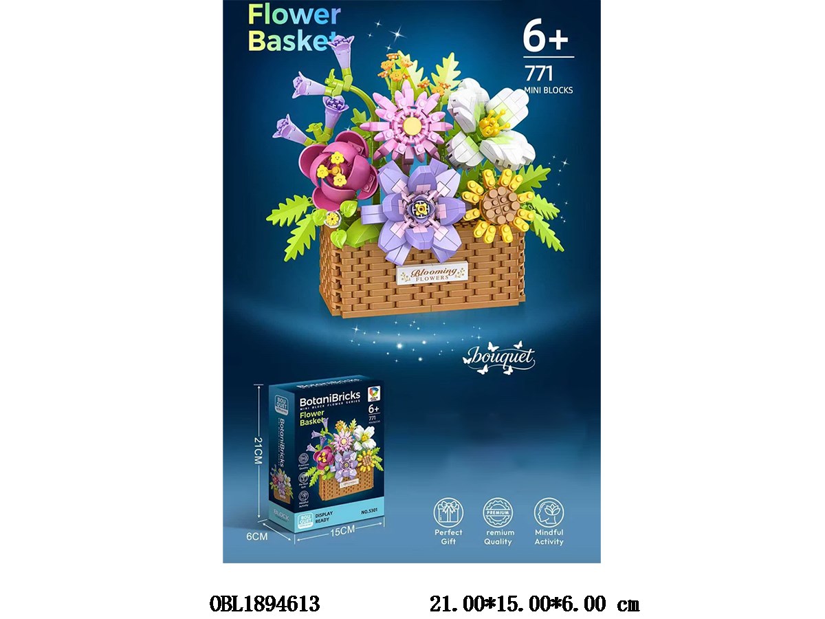 Puzzle building block micro particle flower basket 771pcs