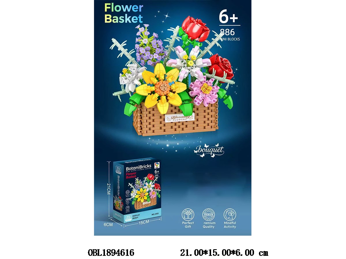 Home > Common Building Blocks > Puzzle building block micro particle flower basket 886PCS